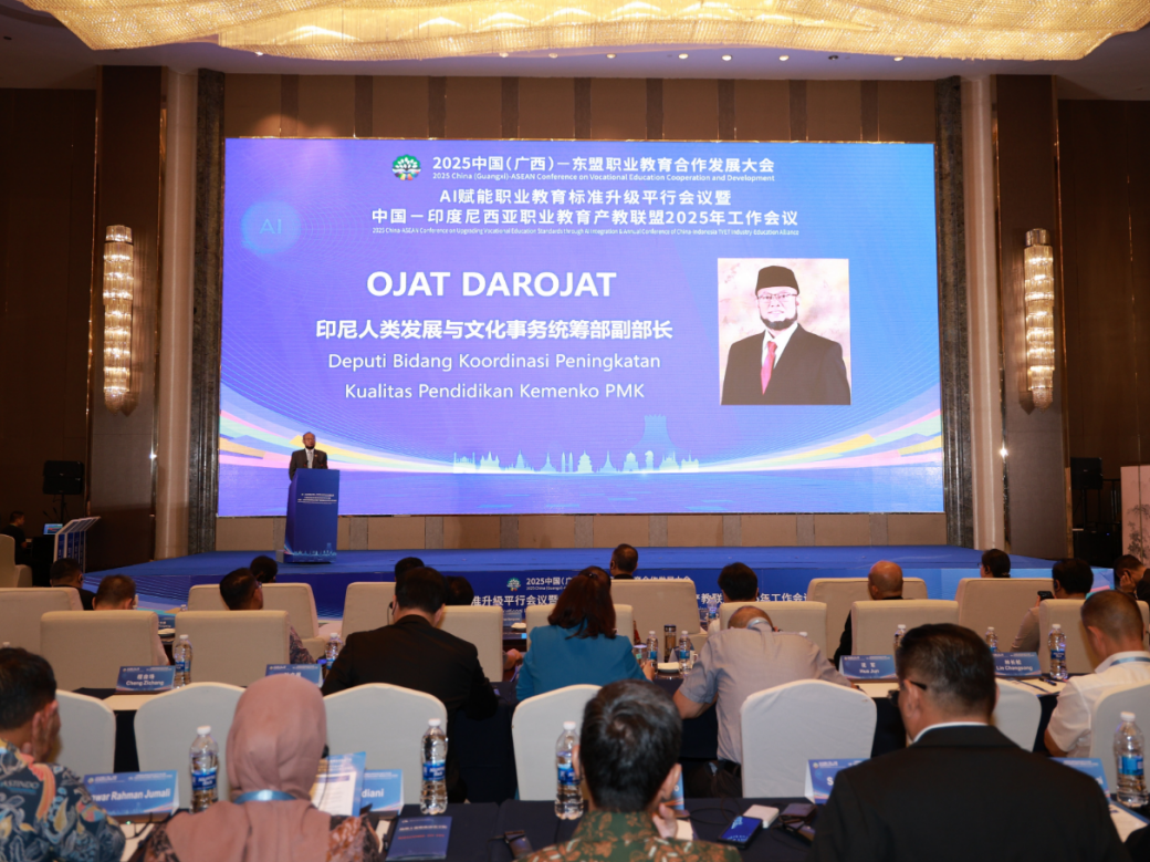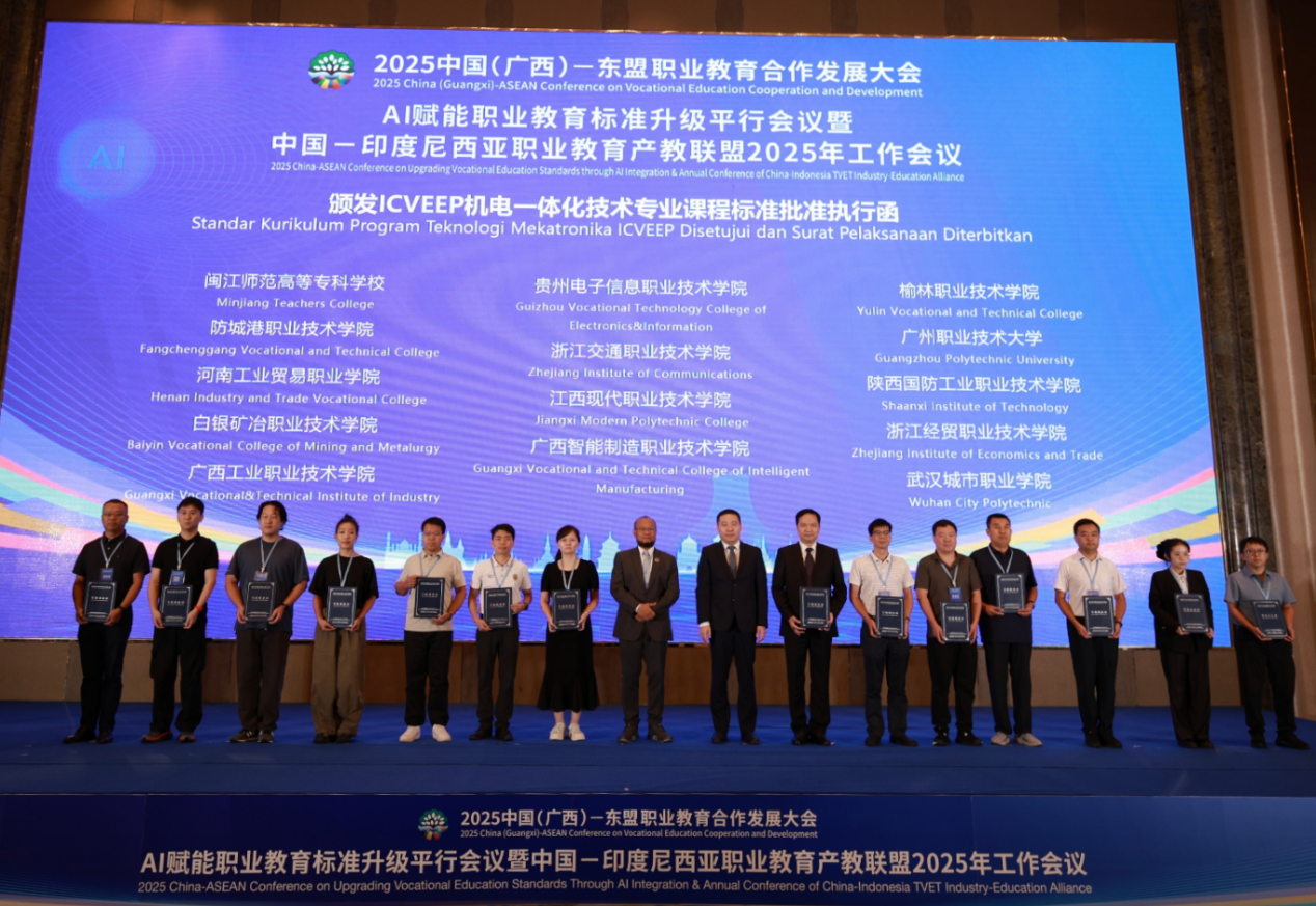 作为中国-印度尼西亚职业教育产教联盟成员单位,学校精密制造学院和国际教育学院教师受邀参加了由中国教育国际交流协会、全国机械职业教育教学指导委员会、教育部职业院校信息化教学指导委员会指导,柳州职业技术大学承办的“AI 赋能职业教育标准升级暨中国-印度尼西亚职业教育产教联盟 2025年工作会议”。本次会议以“AI赋能职业教育标准升级”为主题,旨在推动人工智能技术赋能职业教育标准体系建设,深化中国与东盟国家在职业教育领域的务实合作。会议期间,学校代表积极参与联盟年度工作总结以及ICVEEP项目研讨,并与来自印尼多所高校、政府机构及中方院校、企业代表进行了深入交流。学校积极参与“印尼机电一体化技术专业课程标准项目”和“中印尼双学历教育合作办学项目”,与2所印尼院校建立合作并完成项目匹配,学校主导建设的一门课程标准获批执行。