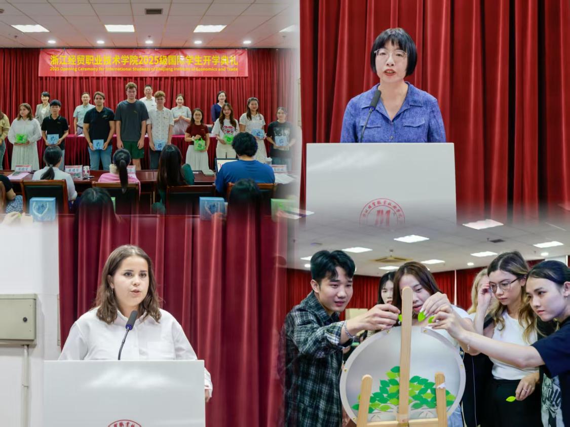 国际教育学院陈颖瑛作为教师代表发言。她结合自身专业学习经历,以锚定目标、自我赋能、文化浸润为关键词,鼓励新生理解语言文化的深刻内涵,不断拓宽国际视野,努力成长为助力中外文明互鉴的交流使者。 活动还设计了为新生佩戴校徽、赠送纪念品、“共植”心愿树等暖心环节,全体参会师生共同见证国际新生“留学经贸”新征程的扬帆启航。