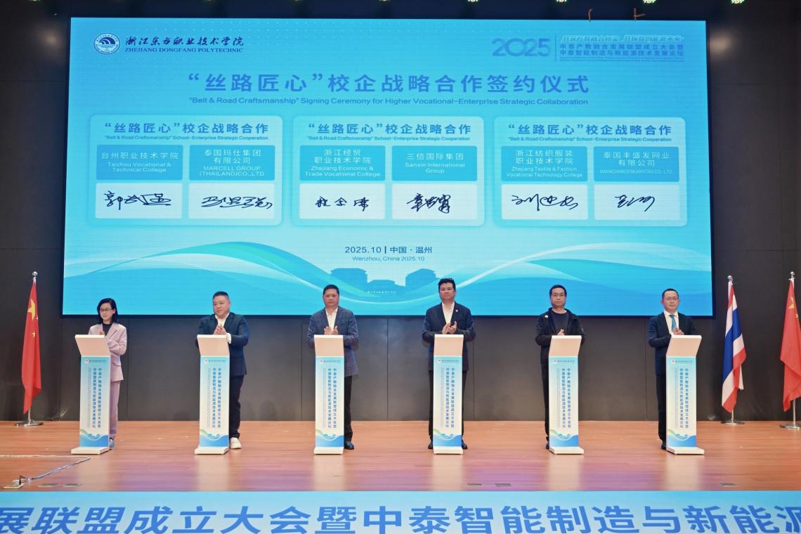 10月31日,2025中泰产教融合发展联盟成立大会暨中泰智能制造与新能源技术发展论坛在浙江温州举行,中泰两国政校行企代表180余人齐聚一堂,共商合作大计,共绘发展蓝图。学校党委委员、副校长程余伟受邀出席会议。