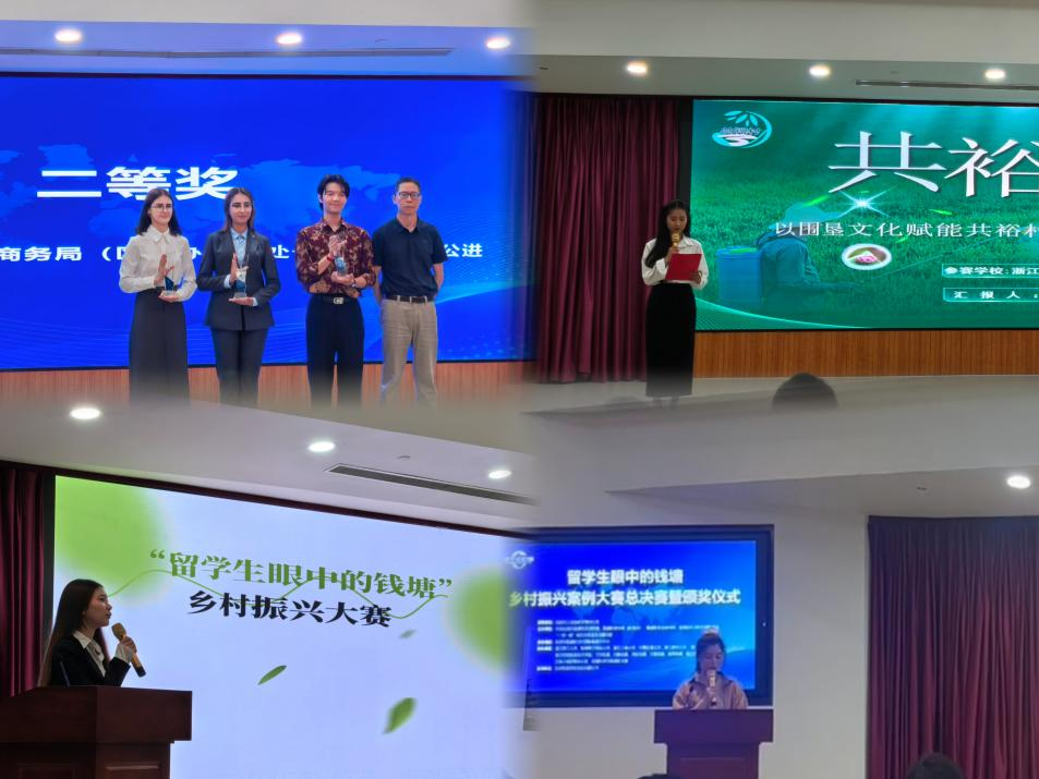 6月13日,由杭州市外办、市委宣传部指导,杭州市钱塘区当代国际化研究中心承办的“留学生眼中的钱塘”乡村振兴案例大赛总决赛在钱塘区政务服务中心报告厅举行。经过前期的激烈角逐,我校4支队伍凭借深入调研与创新视角,从28支参赛队伍中脱颖而出,以优异成绩入围总决赛(共10支队伍)并进行现场展示,最终斩获二等奖1项、三等奖3项。