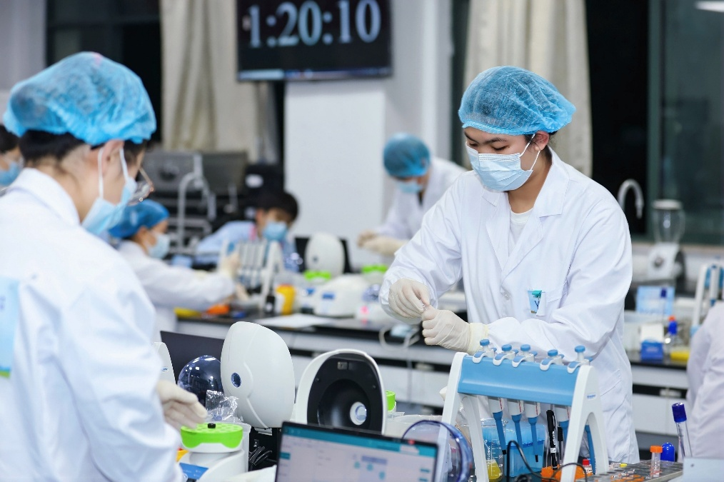 赛项设计紧密对接生物产业实际需求,全面涵盖生物制品检验的核心能力模块,设置“生物技术基本理论知识”“生物实验室安全虚拟仿真”及“大肠杆菌基因组DNA提取与荧光定量PCR检测”三大模块。实操环节完整模拟食品药品检测企业真实工作流程,涵盖培养基配制、微生物接种、细菌DNA提取、荧光定量PCR检测及数据分析报告撰写等全流程操作,突出实战性与综合性。选手们凭借扎实的生物检验技艺,展现了新时代技能人才的风采。