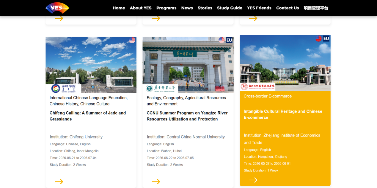 近日,教育部中国教育国际交流协会完成了2026年度“青年使者交流学习计划(Young Envoys Scholarship,简称YES项目)”推介项目的遴选工作。我校2026年度“体验非遗传承,感知电商创新”中美短期学习项目成功入选,目前已正式上线YES项目国际官方网站,面向全球宣介招募学员。