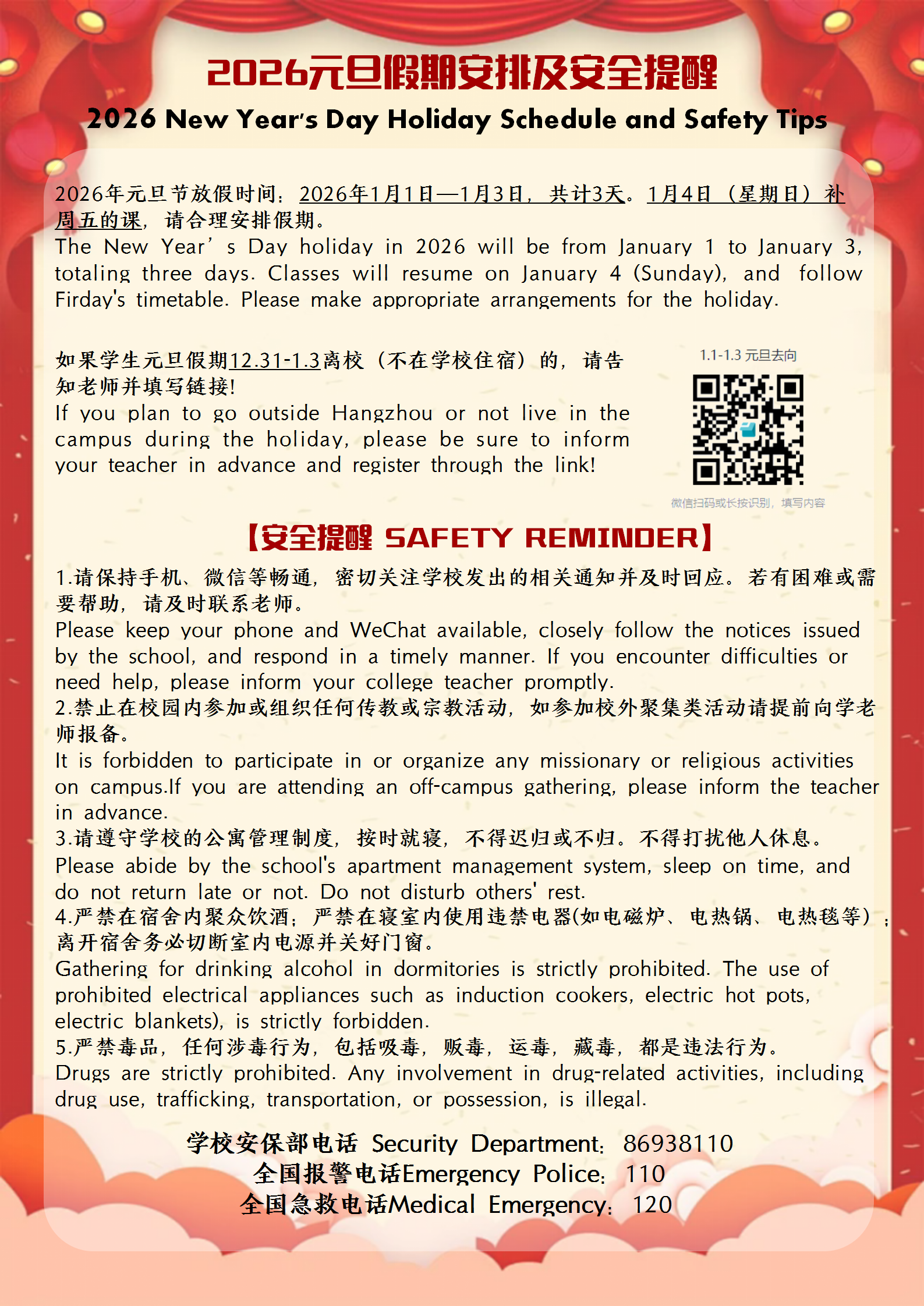 2026元旦假期安排及安全提醒