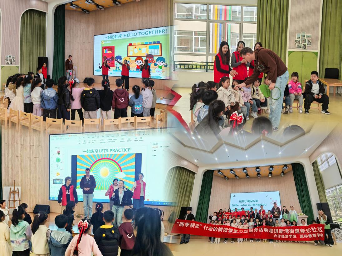 在新湾第二幼儿园,来自俄罗斯、泰国等国家的10余名国际学生志愿者,以荷花为主题,精心设计趣味互动教学环节。他们通过色彩认知、歌舞律动、趣味游戏等生动活泼的形式,带领孩子们学习颜色单词、哼唱英文儿歌,将英语启蒙与趣味体验相结合,不仅丰富了孩子们的课余生活,更让孩子们在欢声笑语中感受多元文化的魅力,为跨文化交流播下希望的种子。